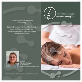 Wir freuen uns, dass wir Ihnen ab sofort auch Massagen direkt bei La Jolie anbieten können. Diese werden von unserer Masseurin Frau Steinparz durchgeführt.
